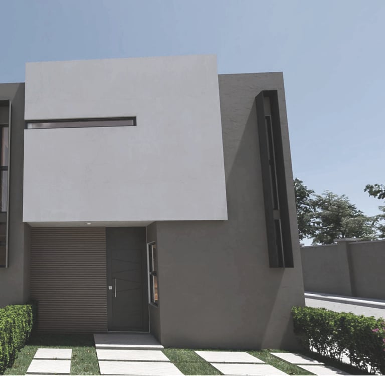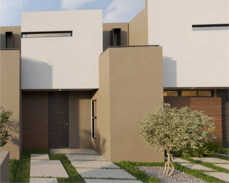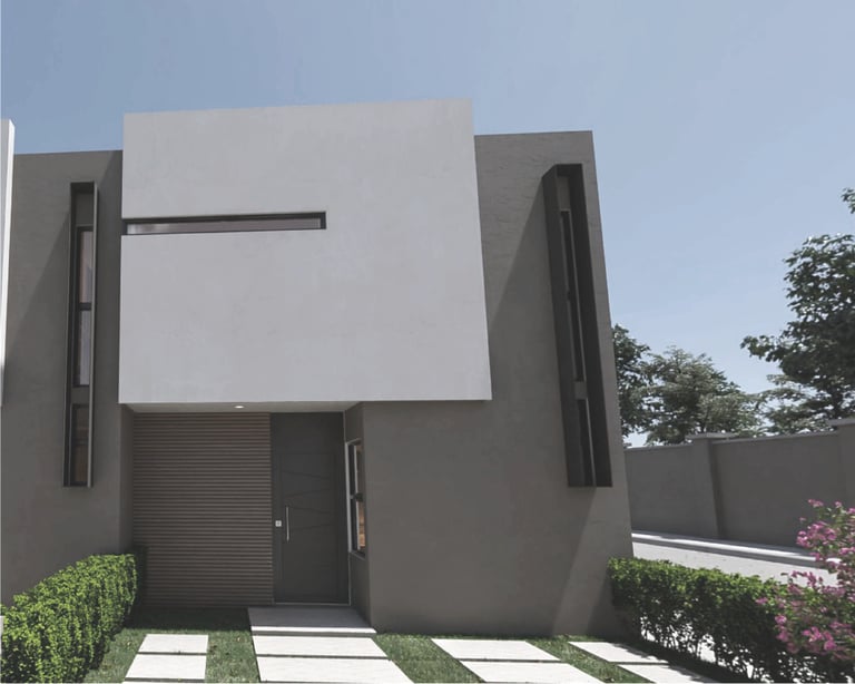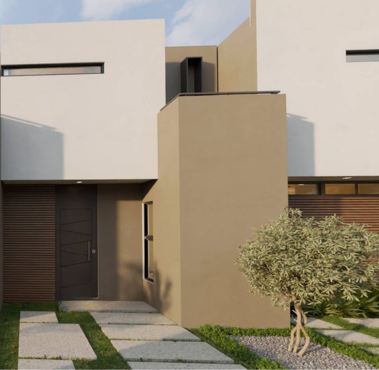 Hogar moderno con 3 recámaras, 3 baños, sala de TV, balcón y jardín posterior.