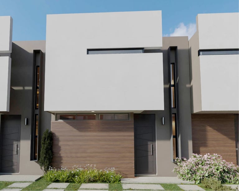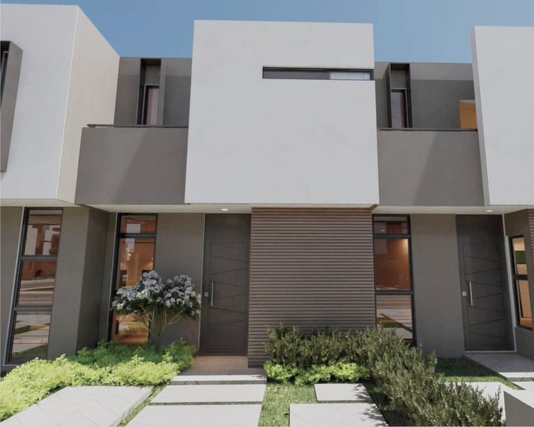 Casa moderna con 3 recámaras, 3 baños, cocina integral, jardín central y 2 balcones en 101.55 m².